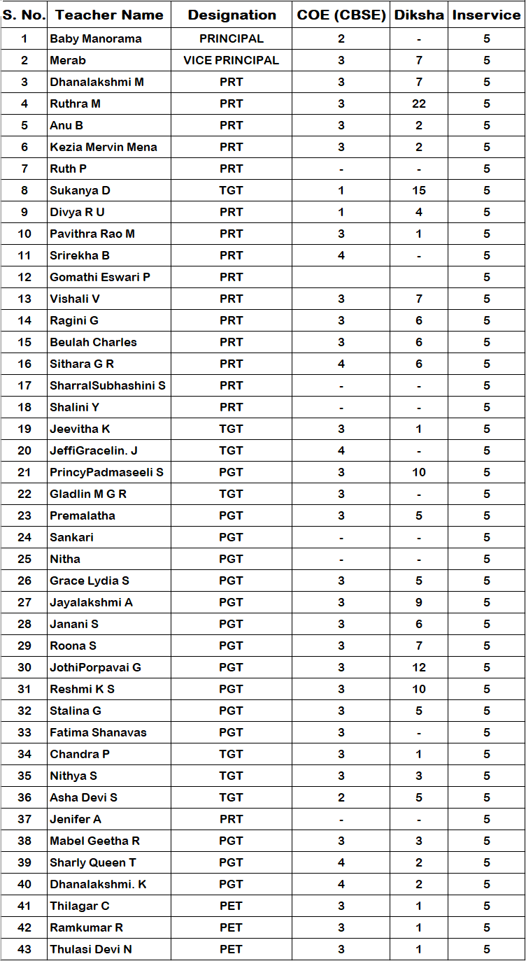 Details of Teachers training